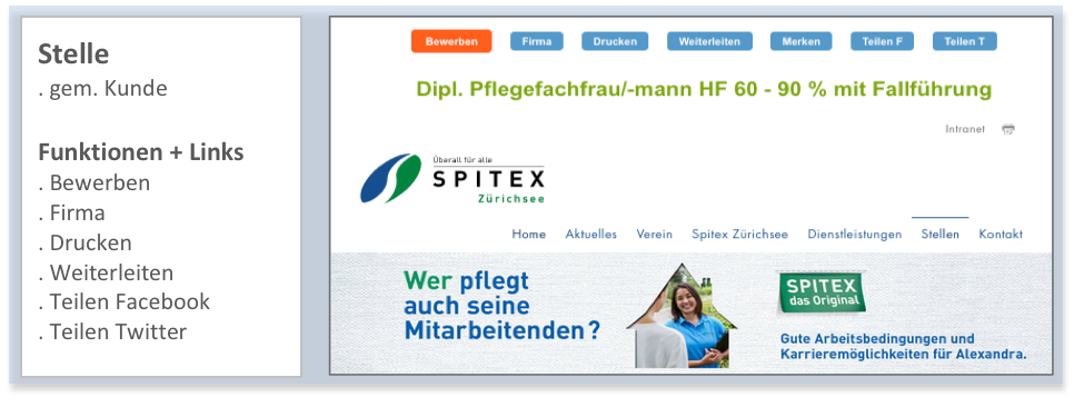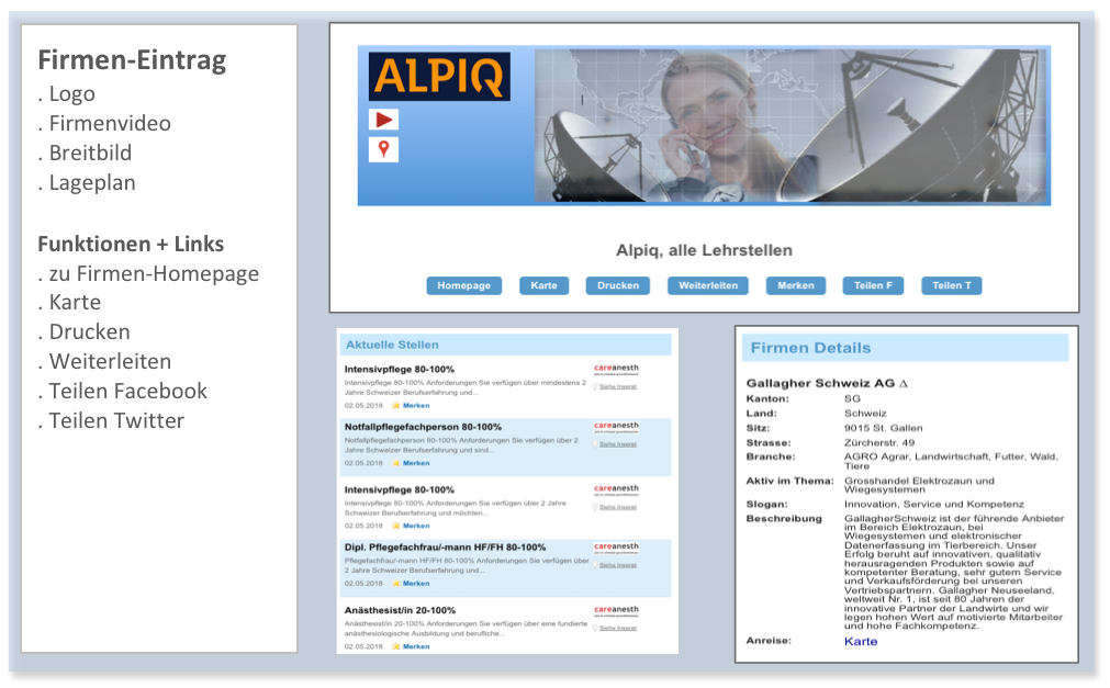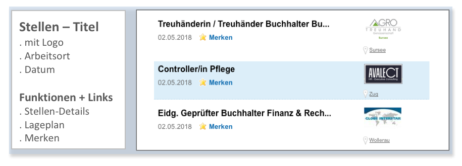 Die "Firmen-Präsentation" wird nach den Stellen am häufigsten angeklickt. Kein Wunder, denn kaum kommt Interesse für eine Stelle auf, will frau/man mehr über die Firma erfahren und klickt gleich zur Firma.